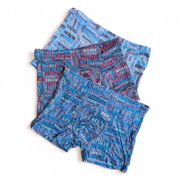 Boxer homme Fibre de Bambou. Boxer doux, agréable au toucher, doublé à l'avant. Boxer avec motifs graphique. Ceinture élastiquée. 3 couleurs et 4 tailles dans le paquet M-L-XL-XXL.