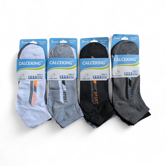 Socquette invisible pour homme, coton majoritaire. Chaussette avec motif graphique et inscription "SPORT" (voir photos). Taille unique 40 à 46.