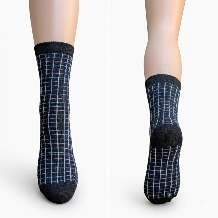 Chaussette femme tige moyenne coton majoritaire 87%. Chaussette avec motifs différents, voir photos. Talons, bout de pied et bord-côte contrastés