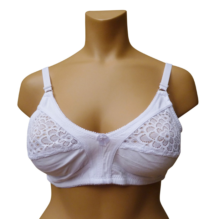 Soutien gorge grande taille, Bonnet D, coton majoritaire. Soutien gorge sans armatures et non rembourré. Dentelle sur la partie supérieure du bonnet. Brides réglables. 3 agrafes dos avec 3 positions. 6 Tailles.